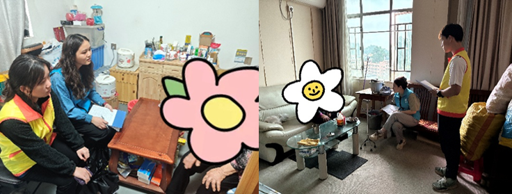 当天下午,志愿者队伍兵分两路,分别开展电话探访与实地探访工作。负责电话探访的志愿者们认真核对名单,以饱满的热情和温暖的声音,向残障人士传递关怀与问候。实地探访的志愿者们跟随社工前往南岗老人临时安置房,用亲切的言语、真诚的笑容和实际行动,生动诠释了“尊老爱幼、助人为乐”的传统美德。