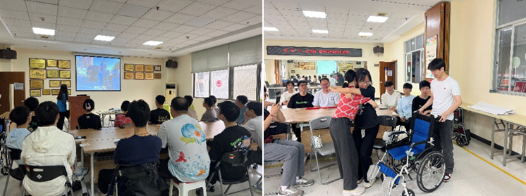 上午,在南岗街社工服务站的精心组织下,活动以一场别开生面的OH卡牌心理学游戏拉开序幕。通过对OH卡的解读与交流,志愿者们不仅深入了解了同伴独特的性格与经历,也在互动中迅速拉近了彼此的距离。在情景模拟环节,社工团队播放了正确使用轮椅和搀扶偏瘫残疾人的教学视频,并邀请志愿者们进行实操演练。志愿者们分别扮演“残疾人”和“助残志愿者”,在模拟情境中学习如何安全、有效地协助残疾人活动。通过实战技能培训,志愿者们不仅熟练掌握了轮椅使用技巧,也深刻认识到为残障人士提供恰当帮助与支持的重要意义。