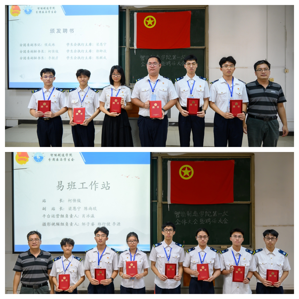 接着,张志斌老师和林恬恬老师分别为分团委委员、员工会执行主席、分团委和员工会部门负责人、易班工作站成员颁发聘书。这不仅是对他们过去一年辛勤工作的肯定,也是对他们未来工作的鼓励和期待。大会也为各个部门新加入的成员颁发了聘书。