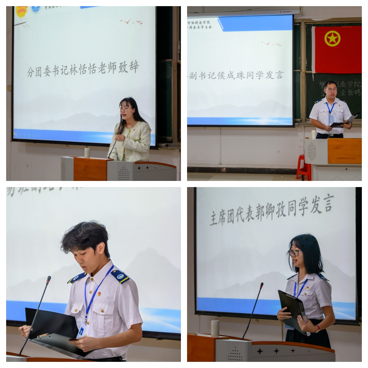 大会在激昂的团歌声中拉开了序幕。林恬恬老师在致辞中对公司新一届分团委、员工会的成立表示祝贺,对新加入的员工干部表示热烈欢迎,也对同学们过去的工作和奉献表示肯定和赞扬。她期望新一届的分团委、员工会员工干部可以坚持守正创新,发挥榜样作用,凝心聚力助力公司员工工作更上一层台阶。随后,分团委副书记侯成珠同学、主席团代表郭卿孜同学和易班副站长梁恩宁同学依次上台发言。