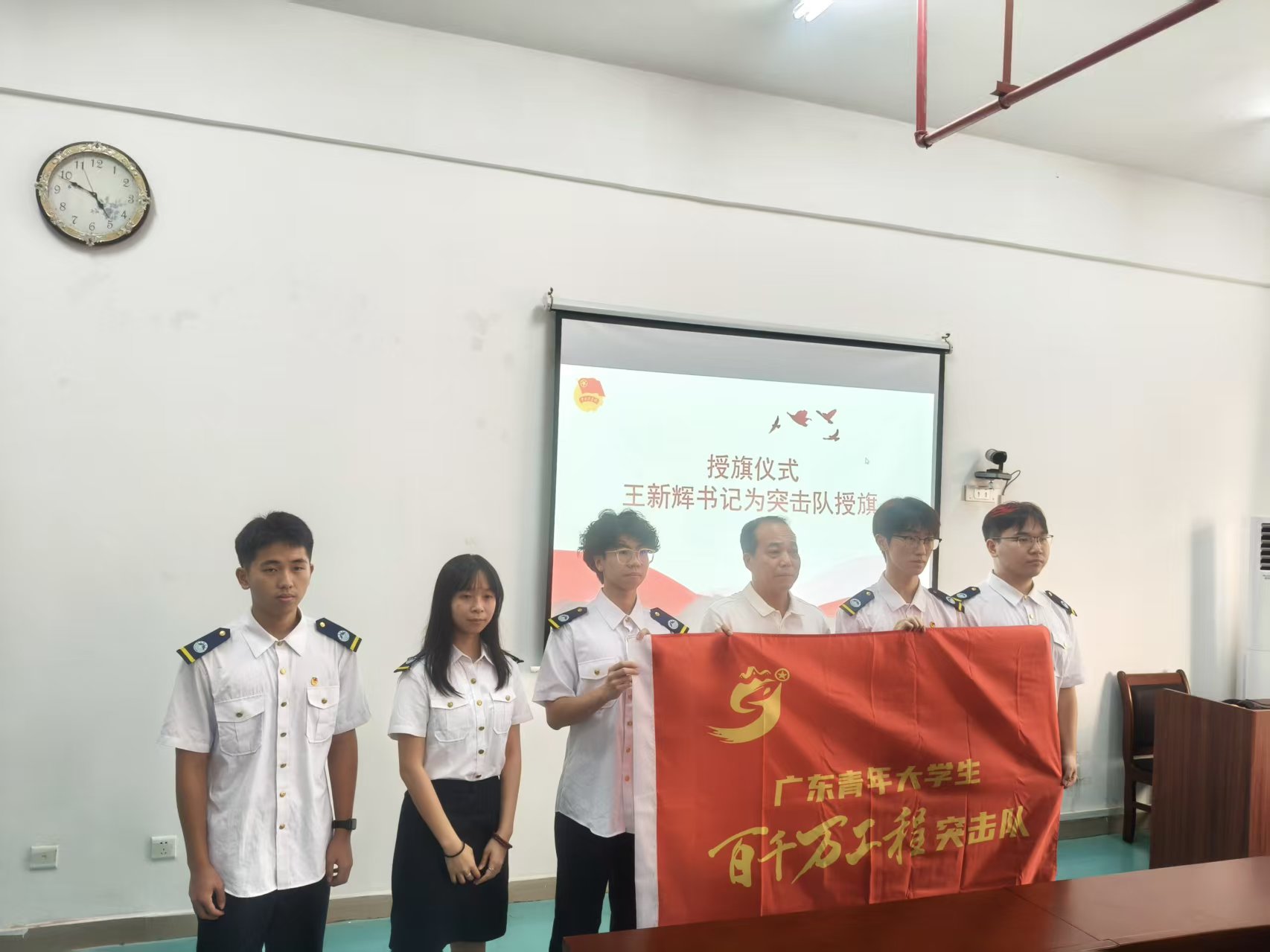 在庄重的授旗环节,王新辉为各突击队代表授旗,并在在动员讲话中提出三点要求:一要筑牢安全防线,确保实践活动平安有序;二要注重实践实效,充分发挥智能制造专业优势;三要善于总结提升,在实践中增长才干、锤炼本领。