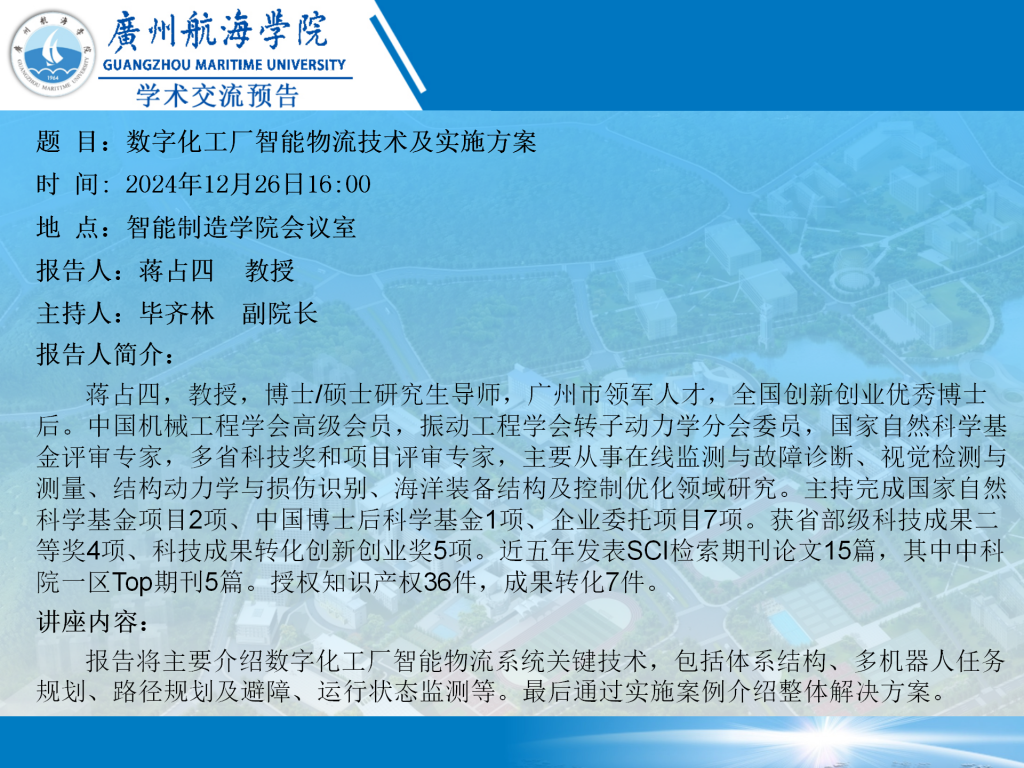 学术交流预告:数字化工厂智能物流技术及实施方案