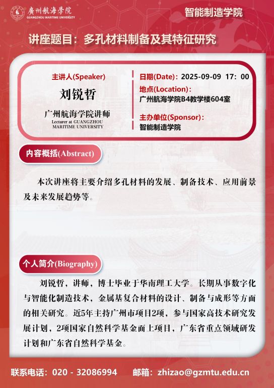学术预告:刘锐哲《多孔材料制备及其特征研究》