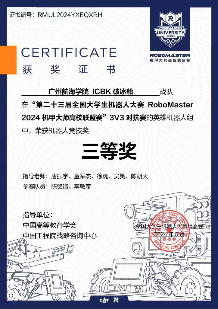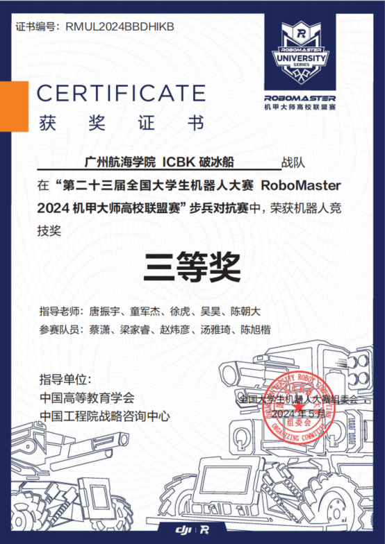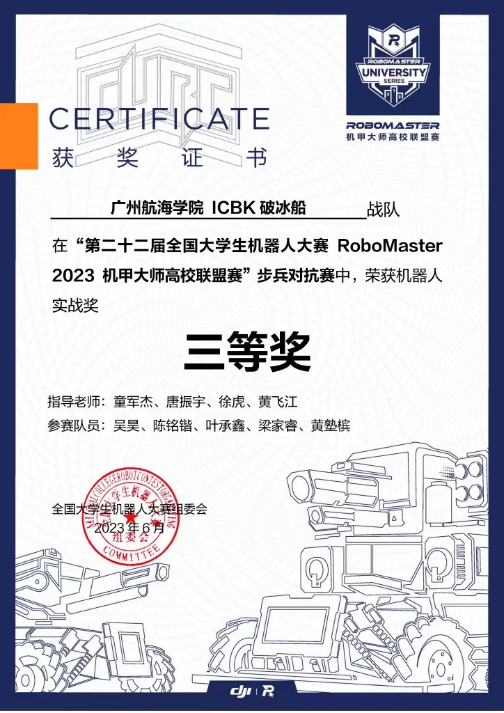 bevictor伟德官网参加第二十三届全国老员工机器人大赛RoboMaster机甲大师高校联盟赛荣获实战竞技奖三等奖4项;第二十二届全国老员工机器人大赛RoboMaster机甲大师高校联盟赛荣获实战竞技奖三等奖2项;第二十一届全国老员工机器人大赛RoboMaster机甲大师高校联盟赛(线上)3V3对抗赛荣获机械方向组别三等奖1项。